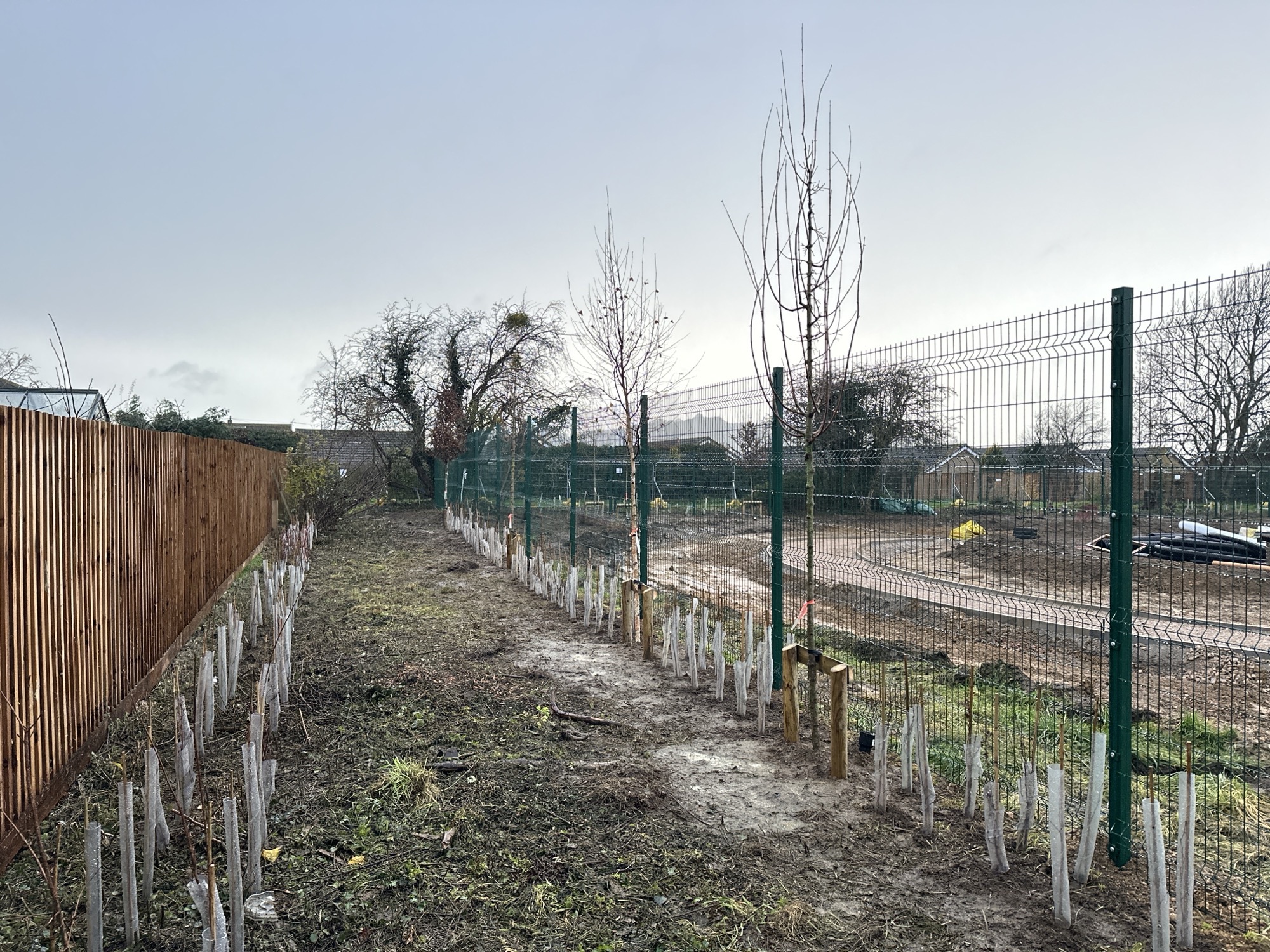 - Outdoor Spaces: Muck-away works have begun to form the amphitheatre area, and stoning up and edgings for the second MUGA pitch are complete, ready for tarmac.