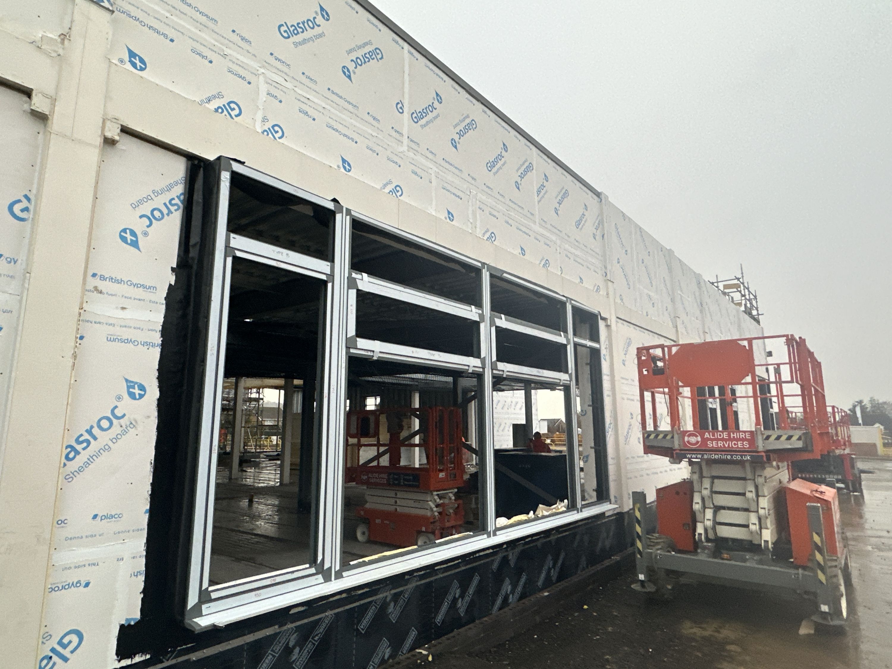 - Windows & Frames: SFS to the building perimeter is ready for windows, and frames for windows and curtain walling have been installed in the hall and primary school.